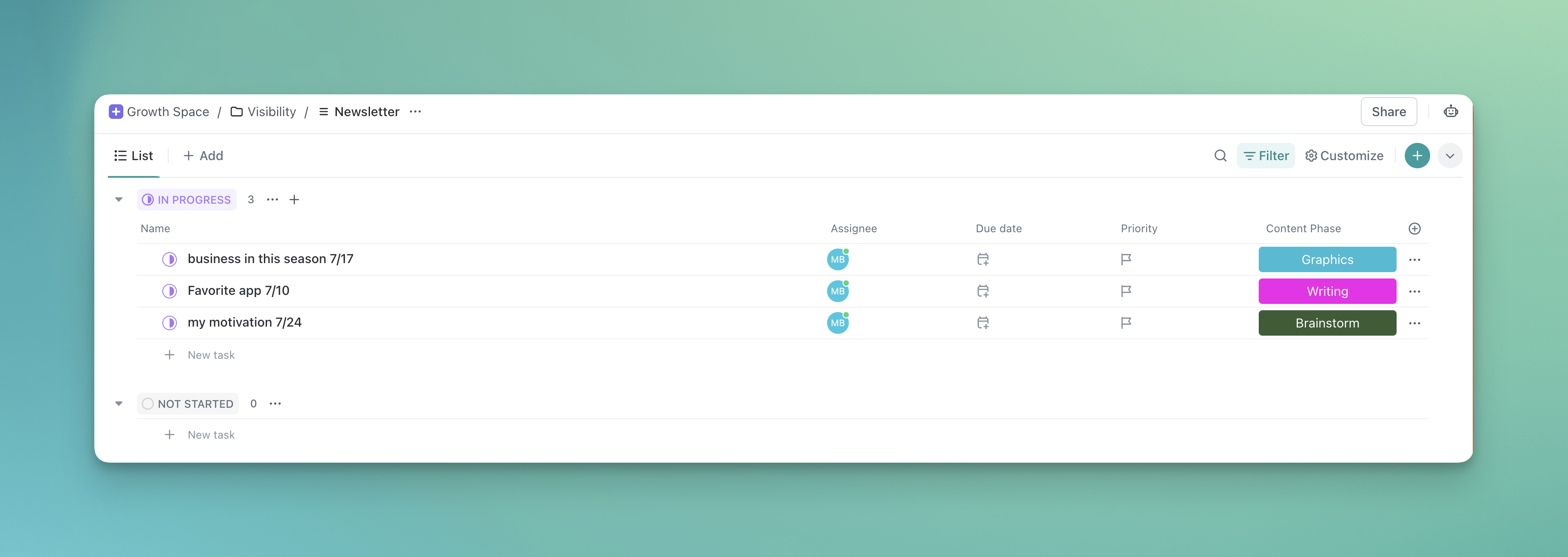 ClickUp offers an ideal platform for organizing and tracking your newsletter tasks efficiently.